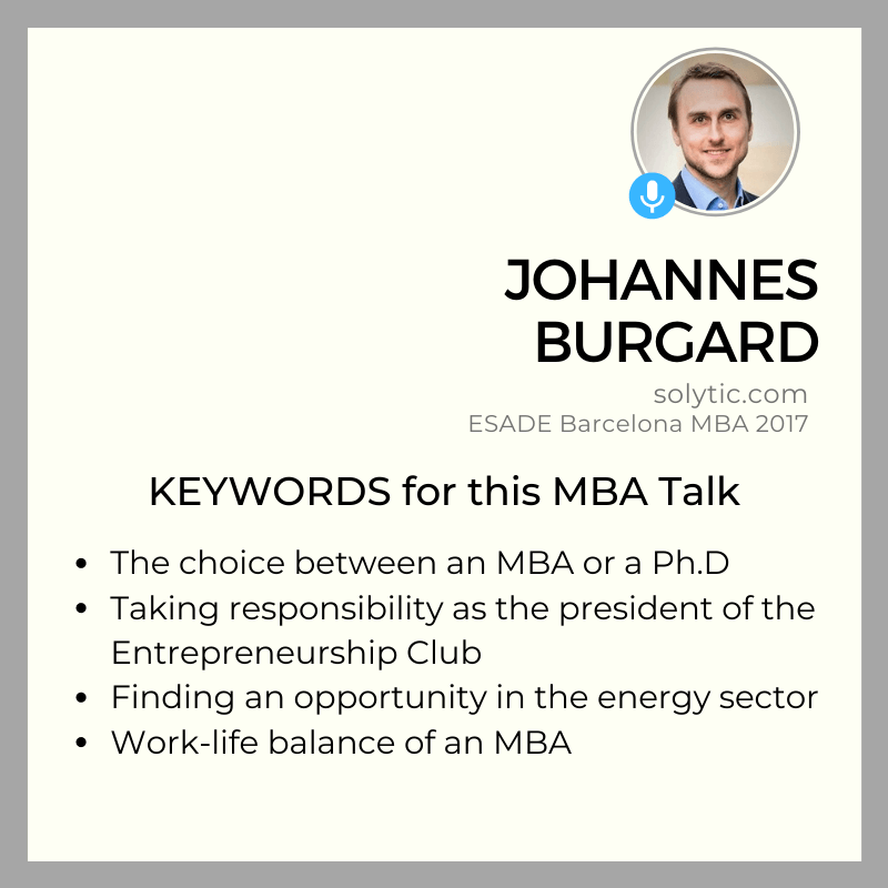 In this episode, we are joined by Johannes Burgard. He is from the ESADE Barcelona 2017 class.